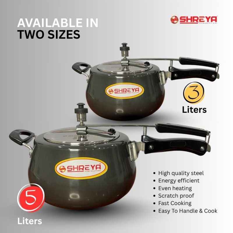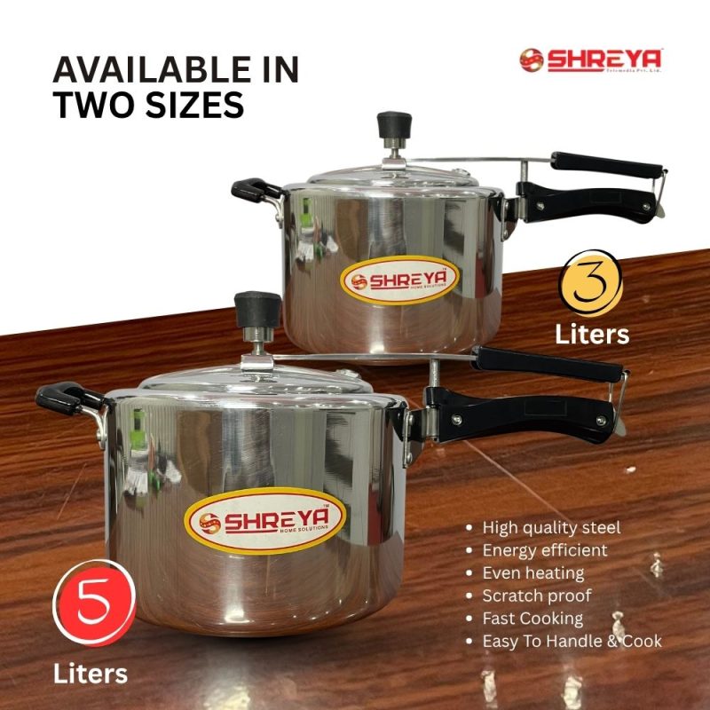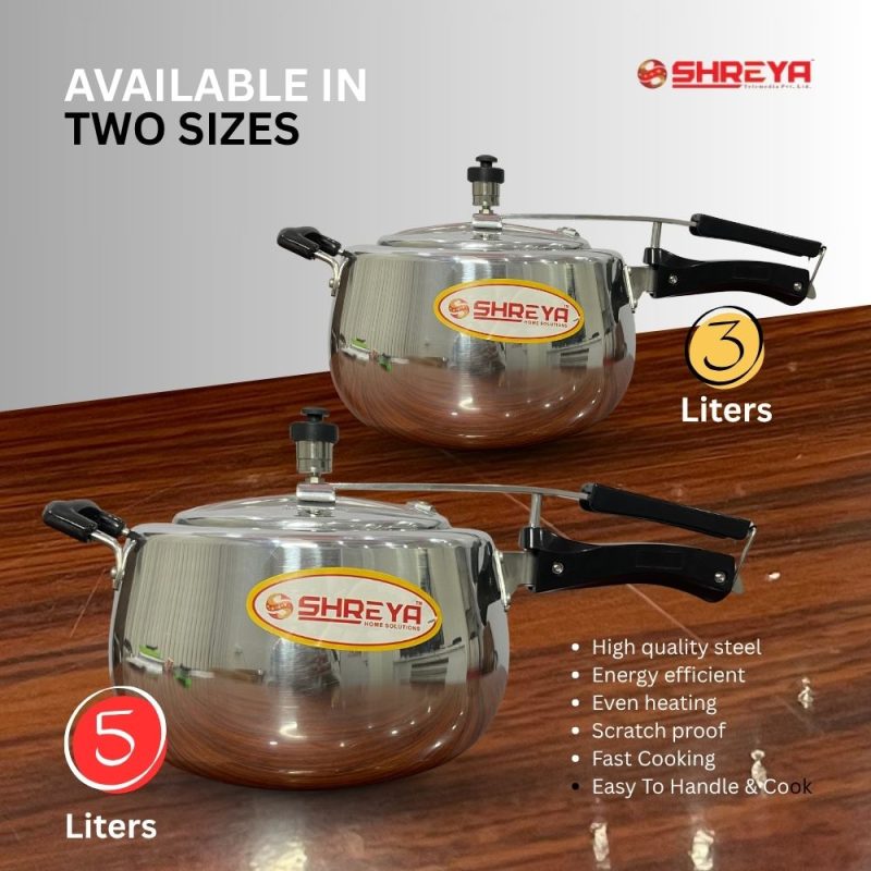 Shreya Regular Pressure Cooker , induction / Regular Base , 5ltr & 3ltr