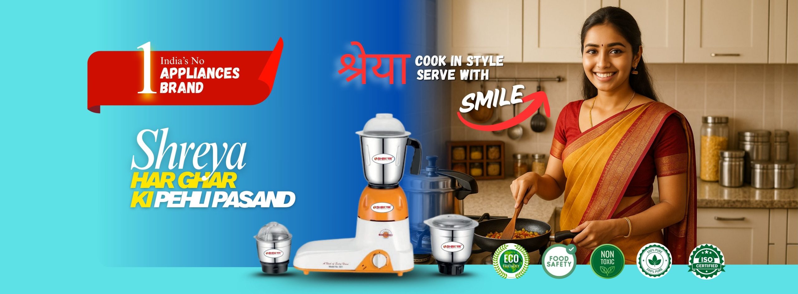 Shreya 750-Watt High-Performance Mixer Grinder – 3 Jar | Heavy-Duty Kitchen Companion