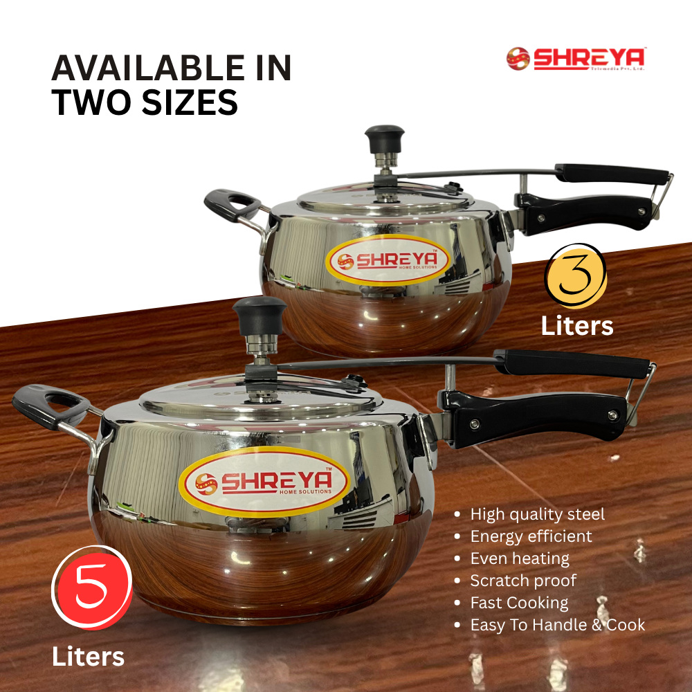 Shreya SS Contura Pressure Cooker – Stainless Steel (3L & 5L)